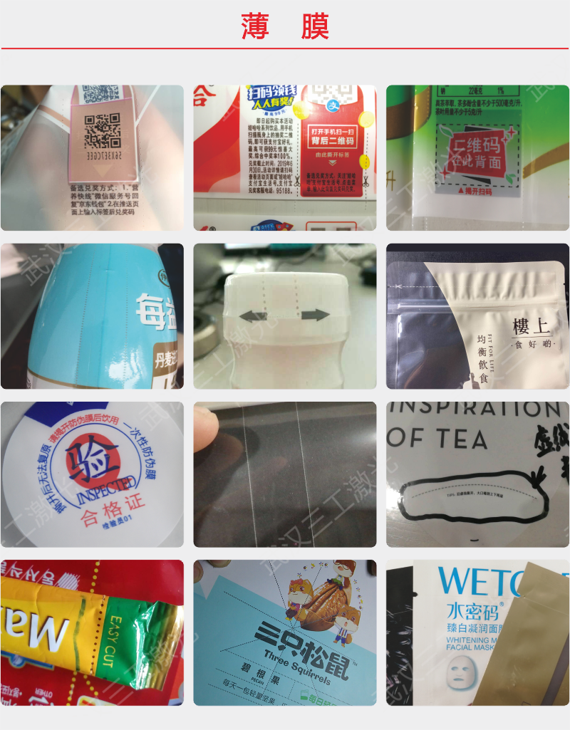 1、適用材料廣,刻字膜、不干膠、薄膜等卷材均可激光打標(biāo)和模切;